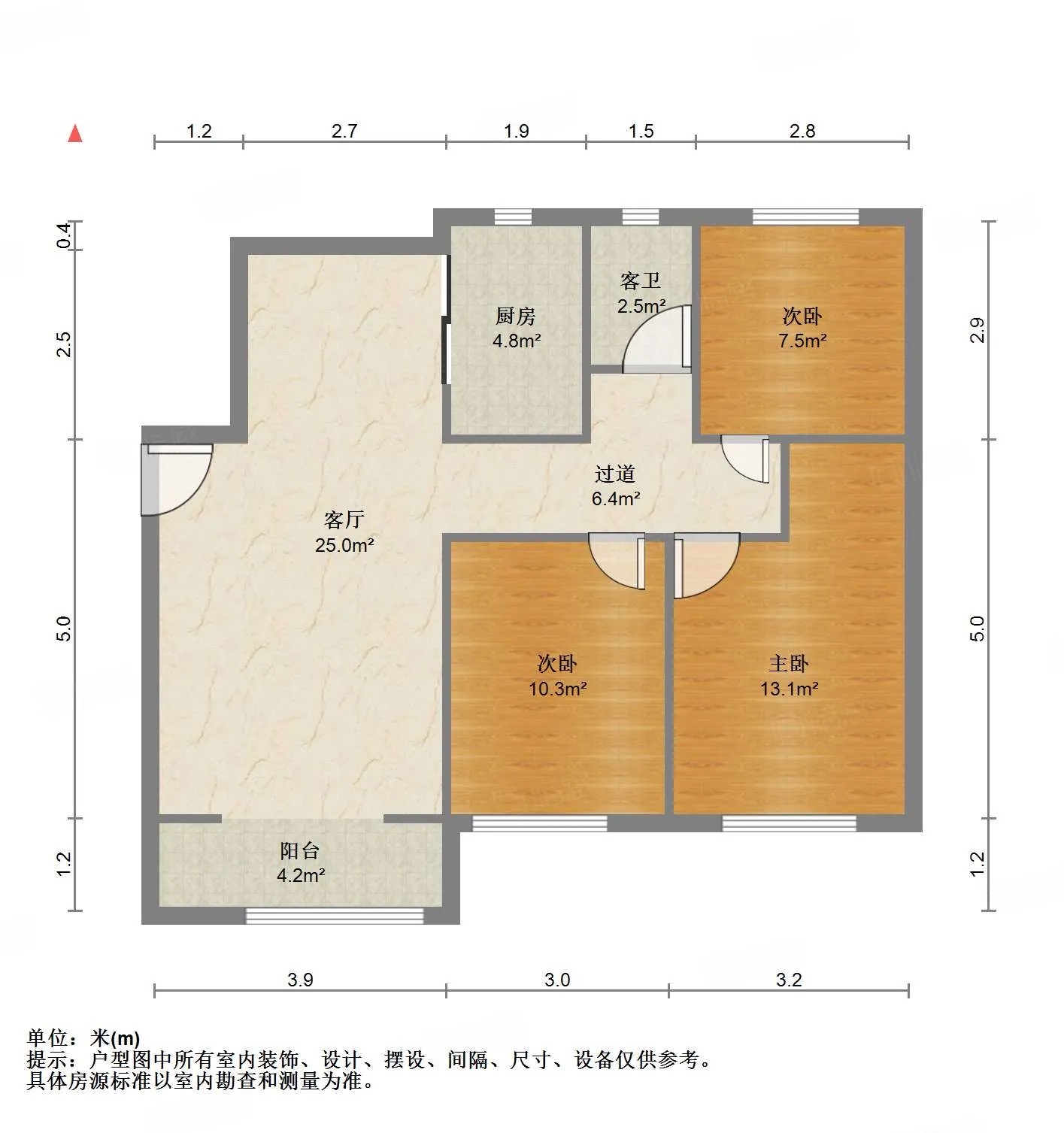厅室3室2厅1卫1阳台