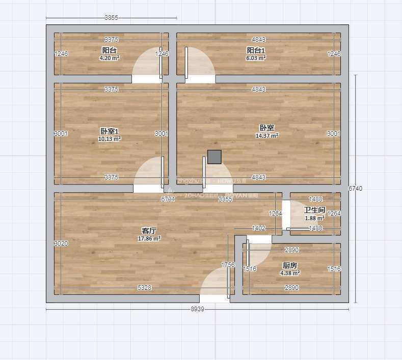 厅室2室1厅1卫1阳台