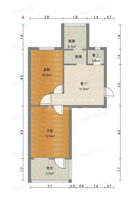 厅室2室1厅1卫1阳台