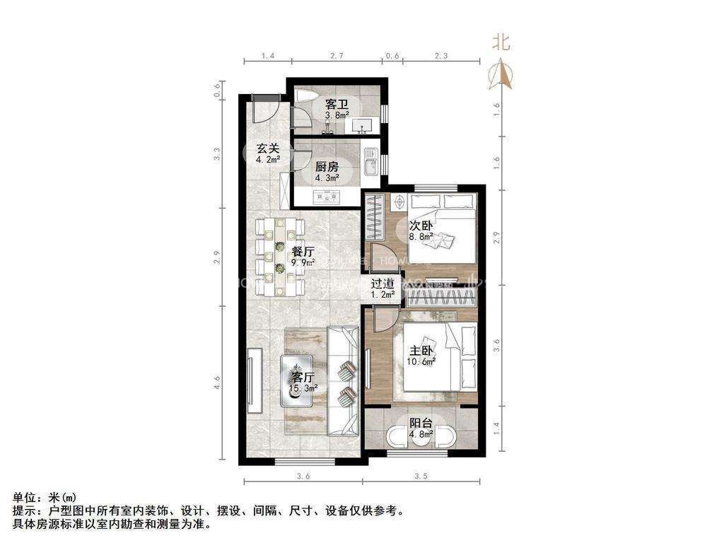 厅室2室1厅1卫1阳台