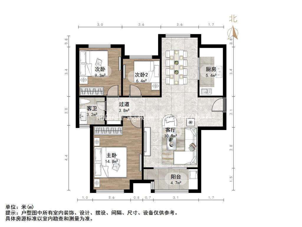 朝向南北 建筑面积110.55㎡