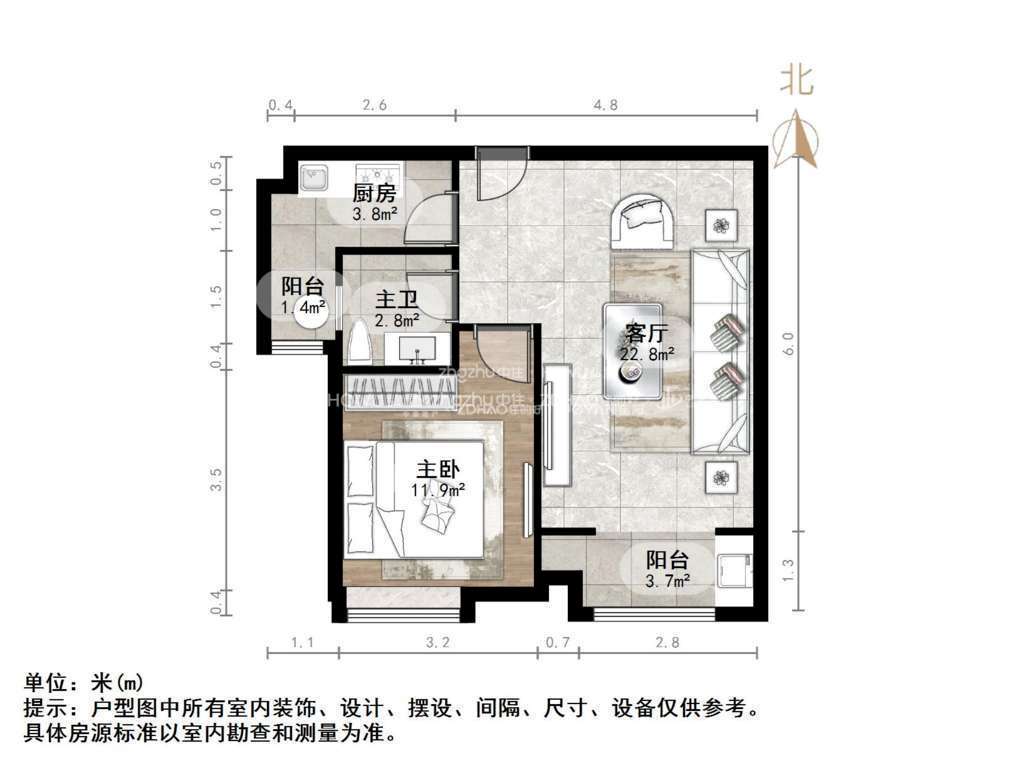 2、户型优势:一室两厅,卧室朝南,客厅方正好用,单元对讲门,安全性高!