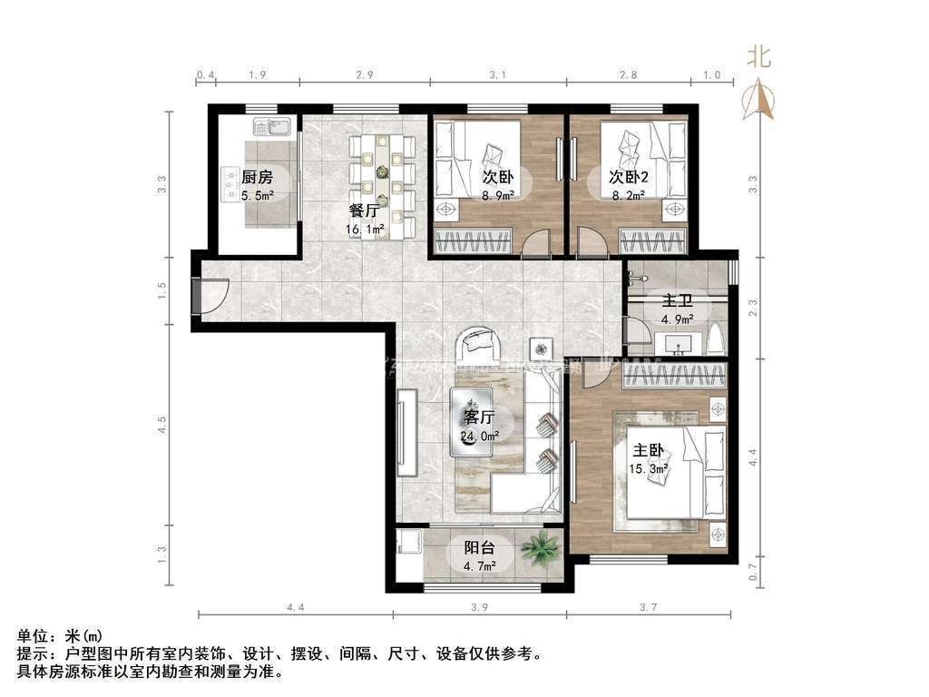 厅室3室2厅1卫1阳台