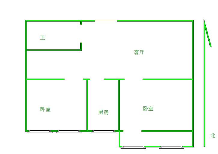 2、户型优势2室2厅,南北卧室,客厅方正好用,单元对讲门,大院传达,安全性高!