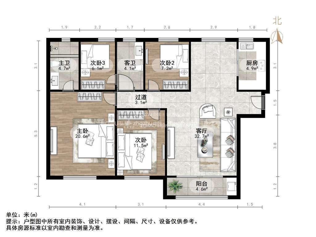 2、户型优势:南北卧室,客厅方正好用,单元对讲门,大院传达,安全性高!
