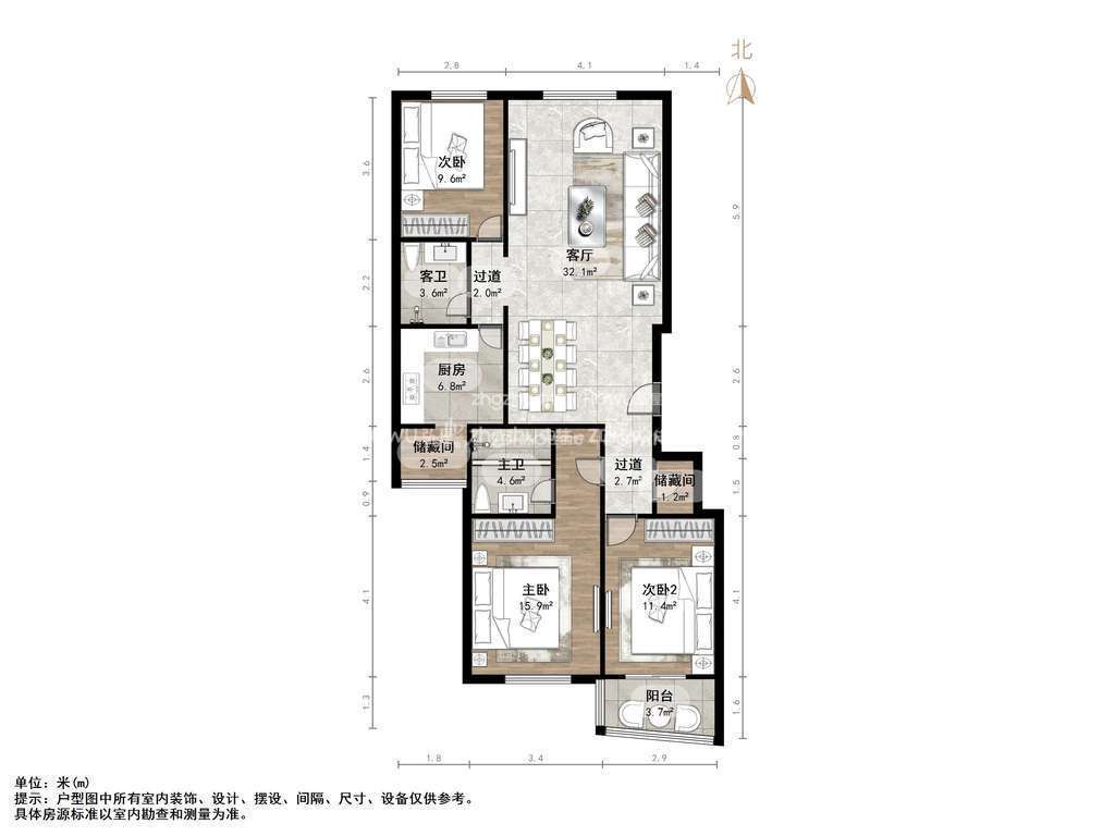 2、户型优势:南北卧室,客厅方正好用,单元对讲门,大院传达,安全性高!