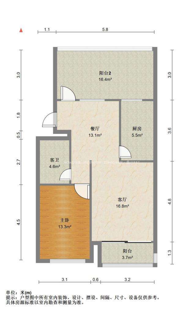 朝向南北 建筑面积74㎡