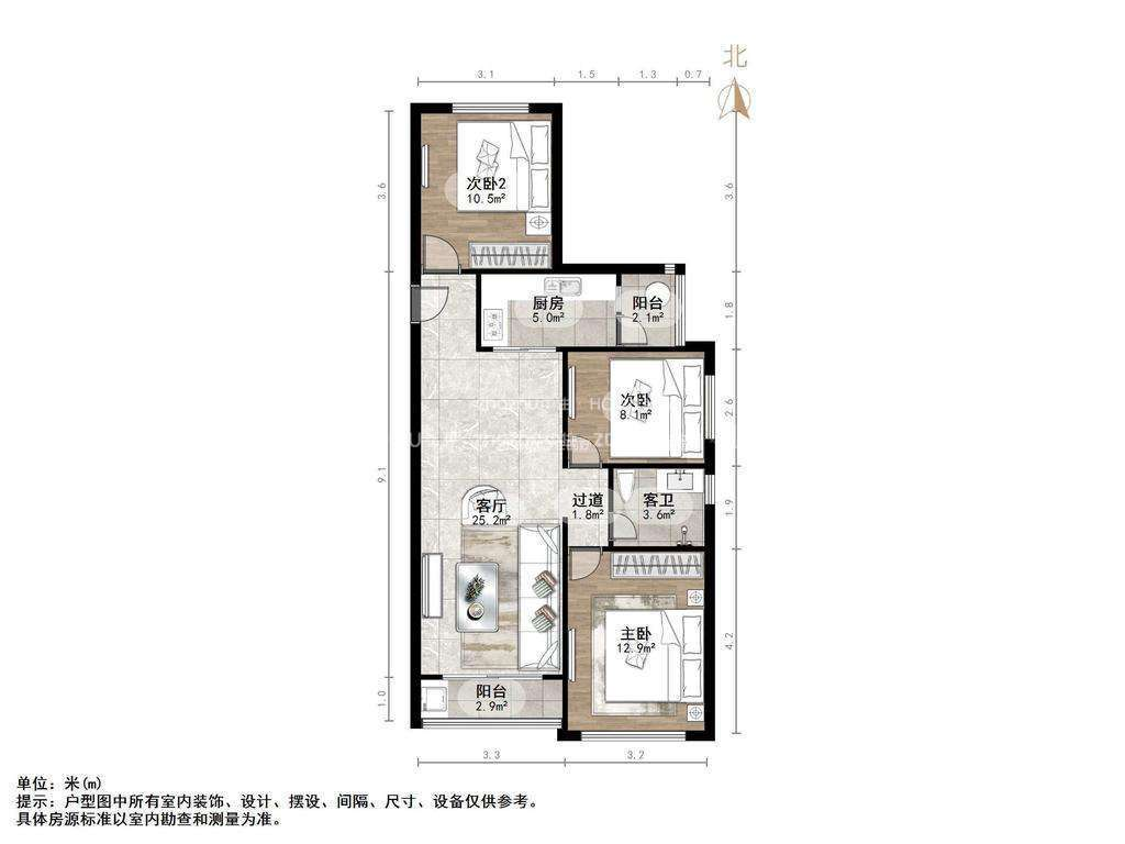 朝向南北 建筑面积108㎡