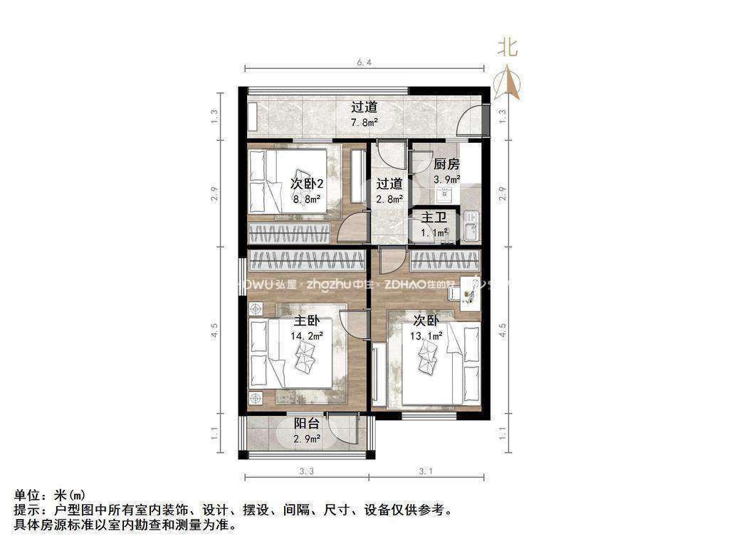 2、楼层朝向:中间楼层,南北通透,采光好。