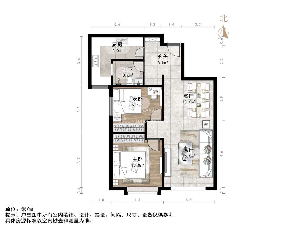 2、户型优势:南北卧室,客厅方正好用,单元对讲门,大院传达,安全性高!