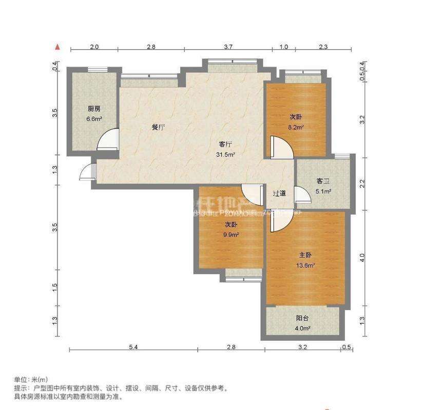 厅室3室2厅1卫1阳台