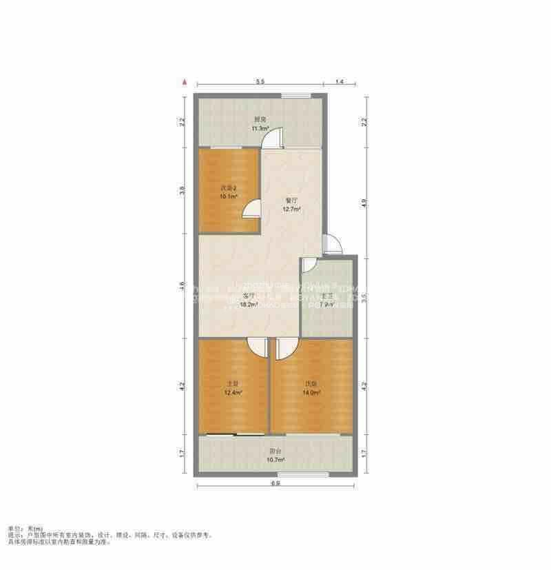 厅室3室2厅1卫1阳台
