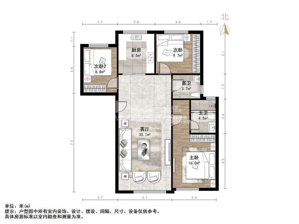 厅室3室2厅2卫1阳台