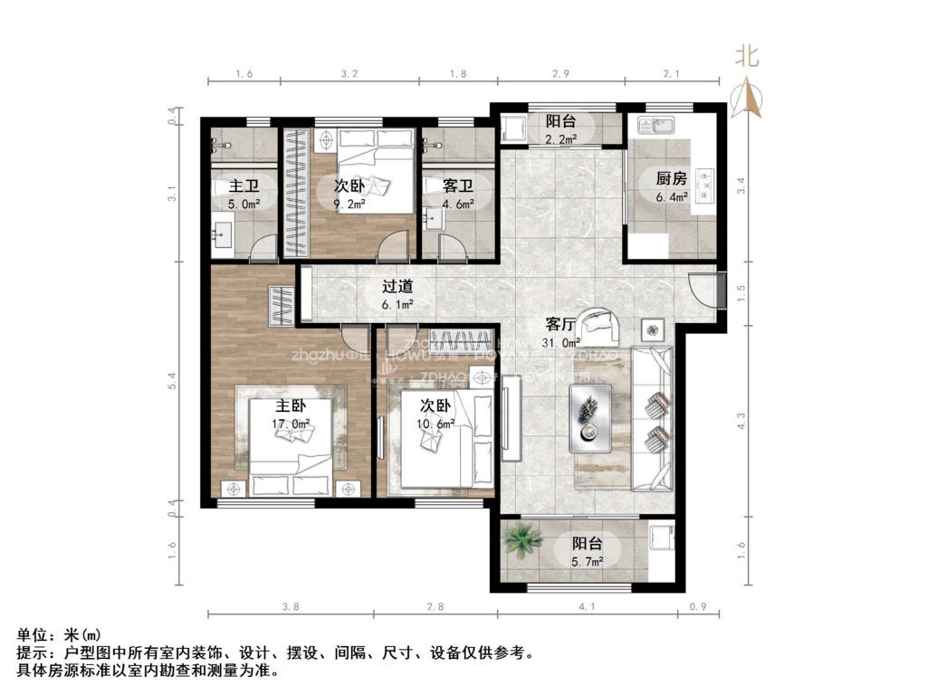 厅室3室2厅2卫2阳台