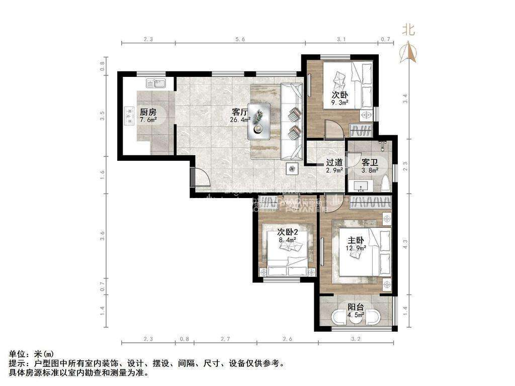 朝向南北 建筑面积105㎡