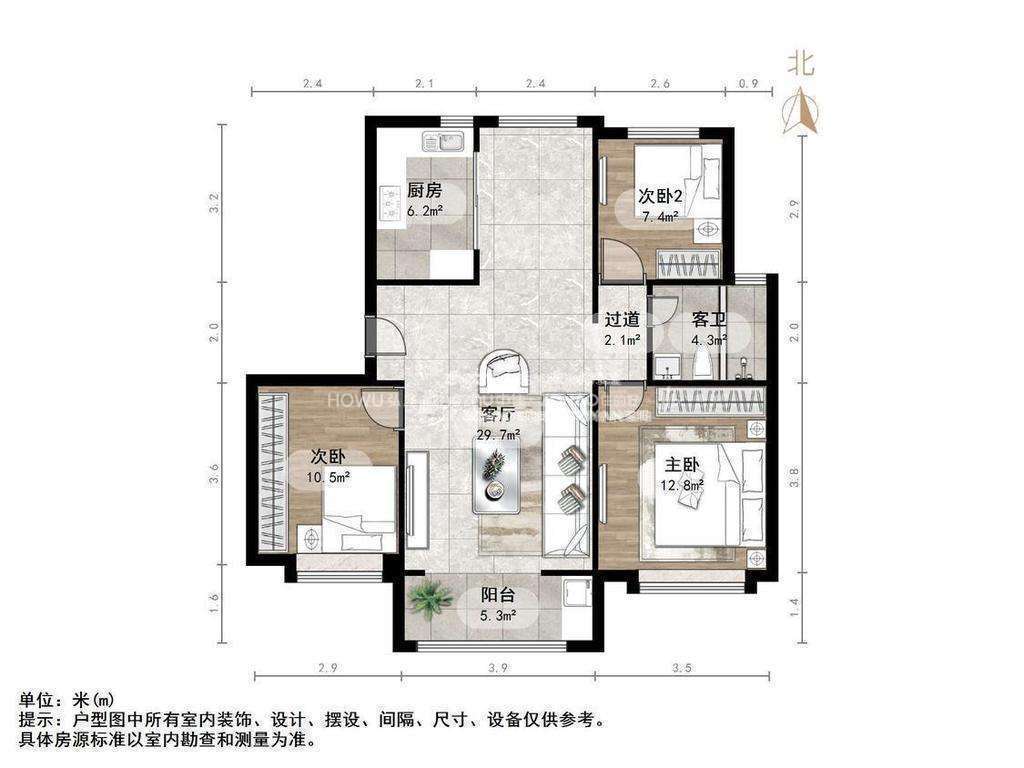 厅室3室2厅1卫1阳台