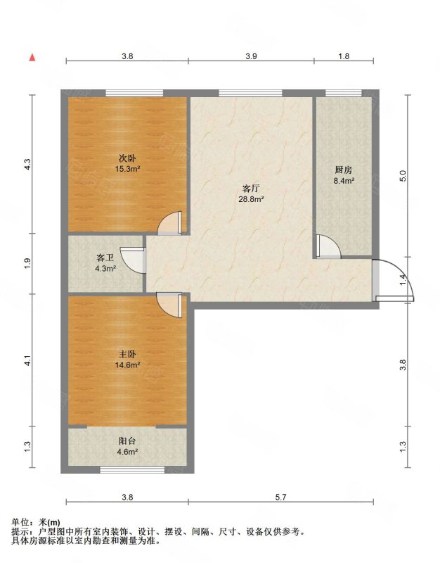 厅室2室2厅1卫2阳台