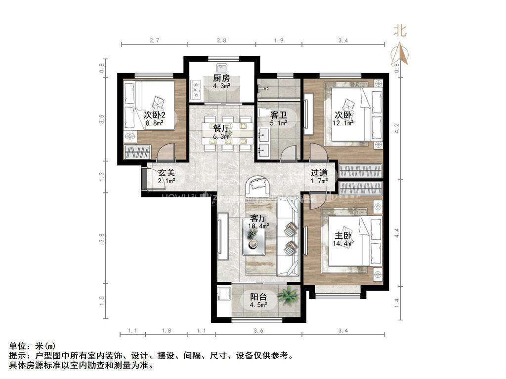 朝向南北 建筑面积113㎡