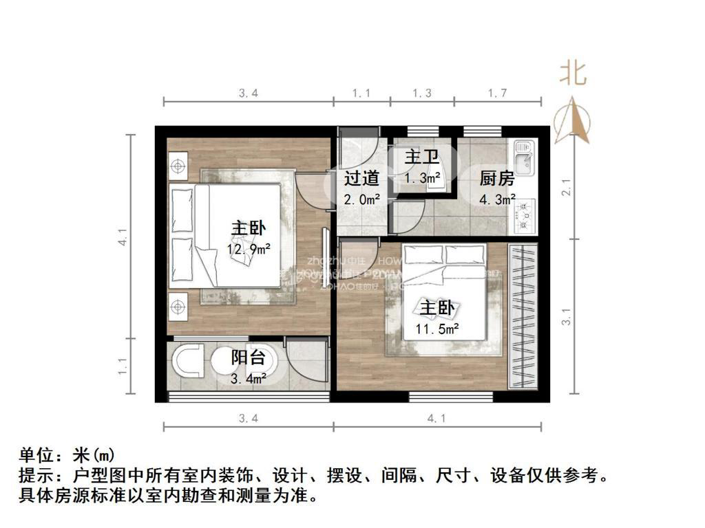 朝向南 建筑面积40㎡