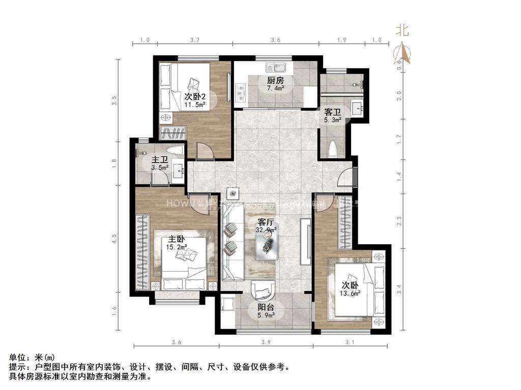 厅室4室2厅2卫1阳台