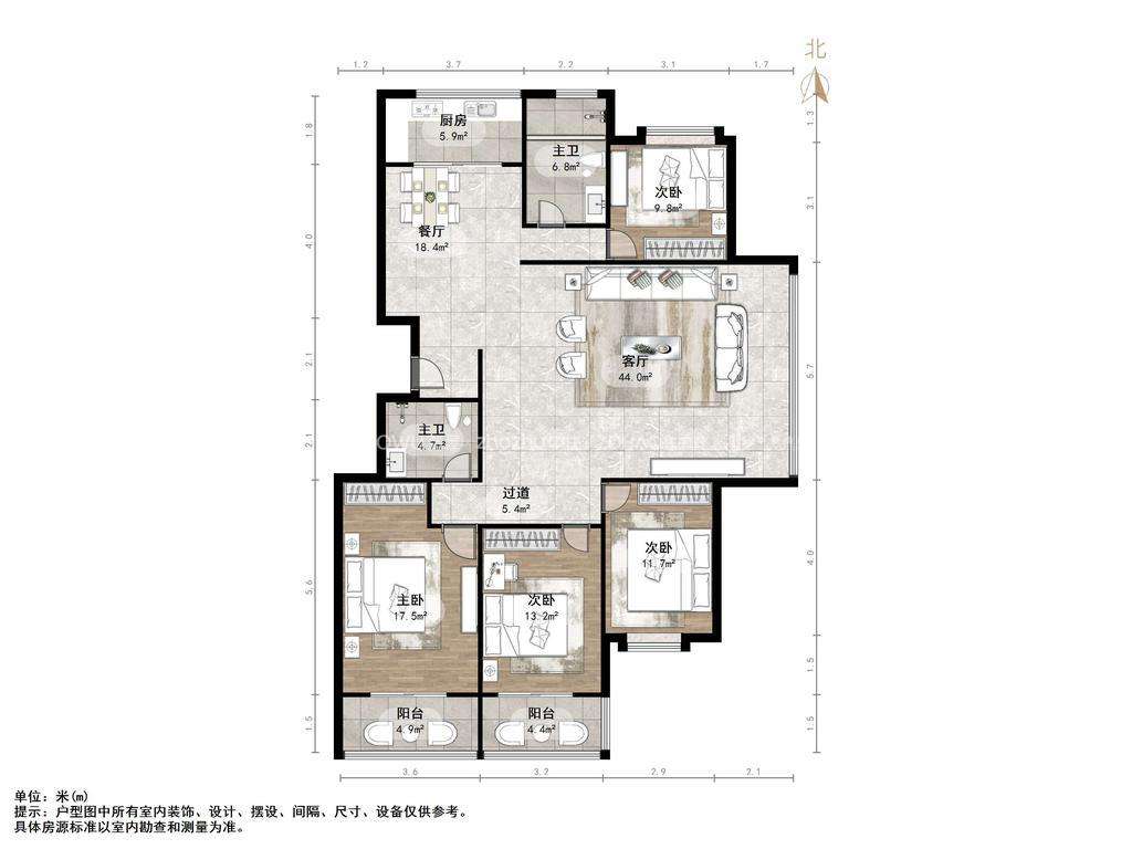 厅室4室2厅2卫2阳台