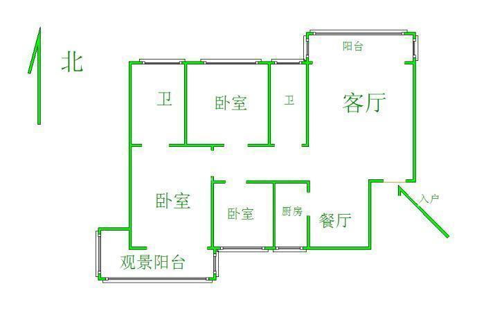 2、户型优势:3室2厅,南北卧室,客厅方正好用,单元对讲门,大院传达,安全性高!