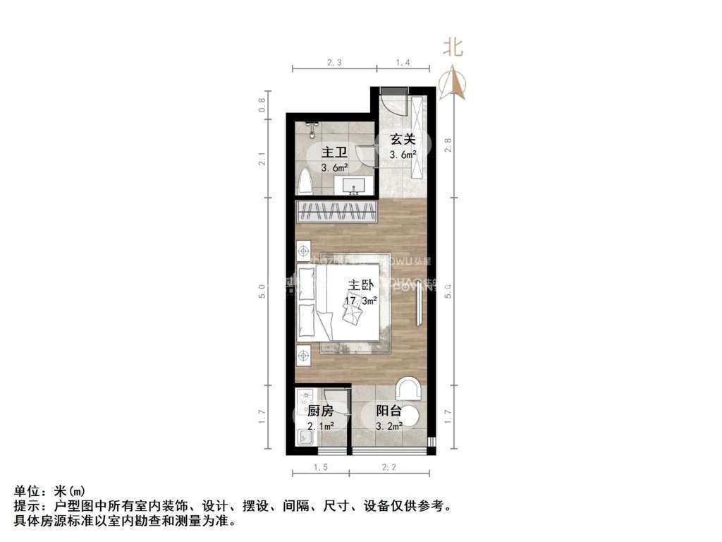 朝向南北 建筑面积36㎡
