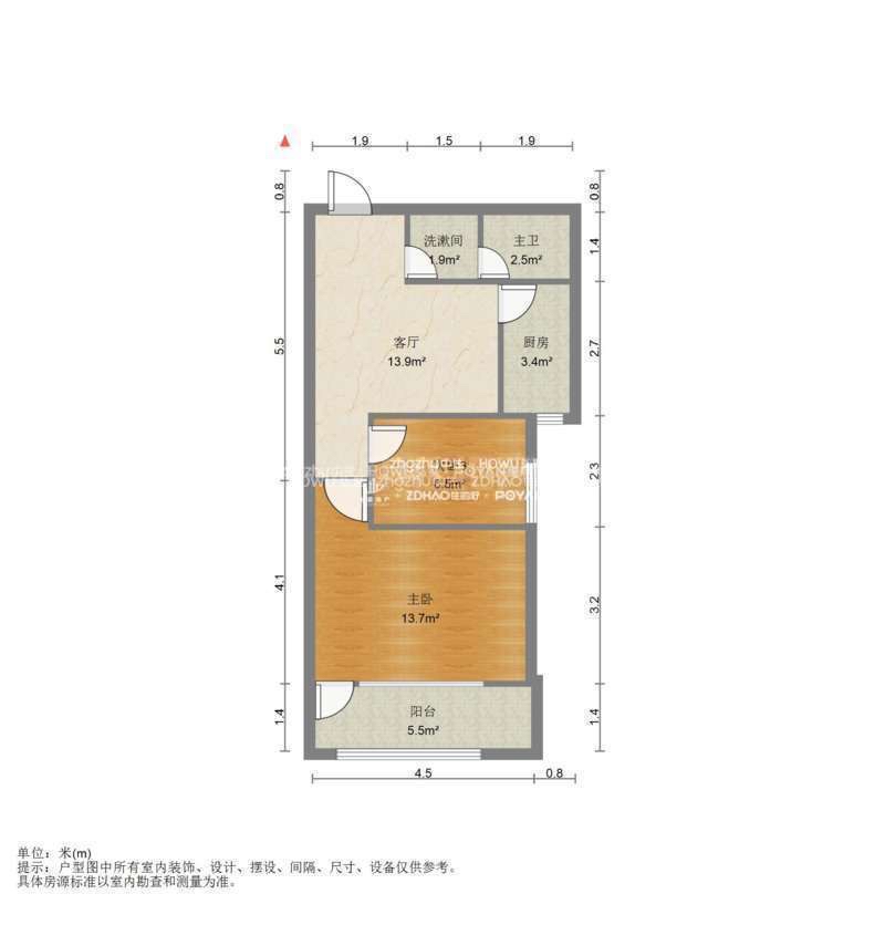 厅室2室1厅1卫1阳台