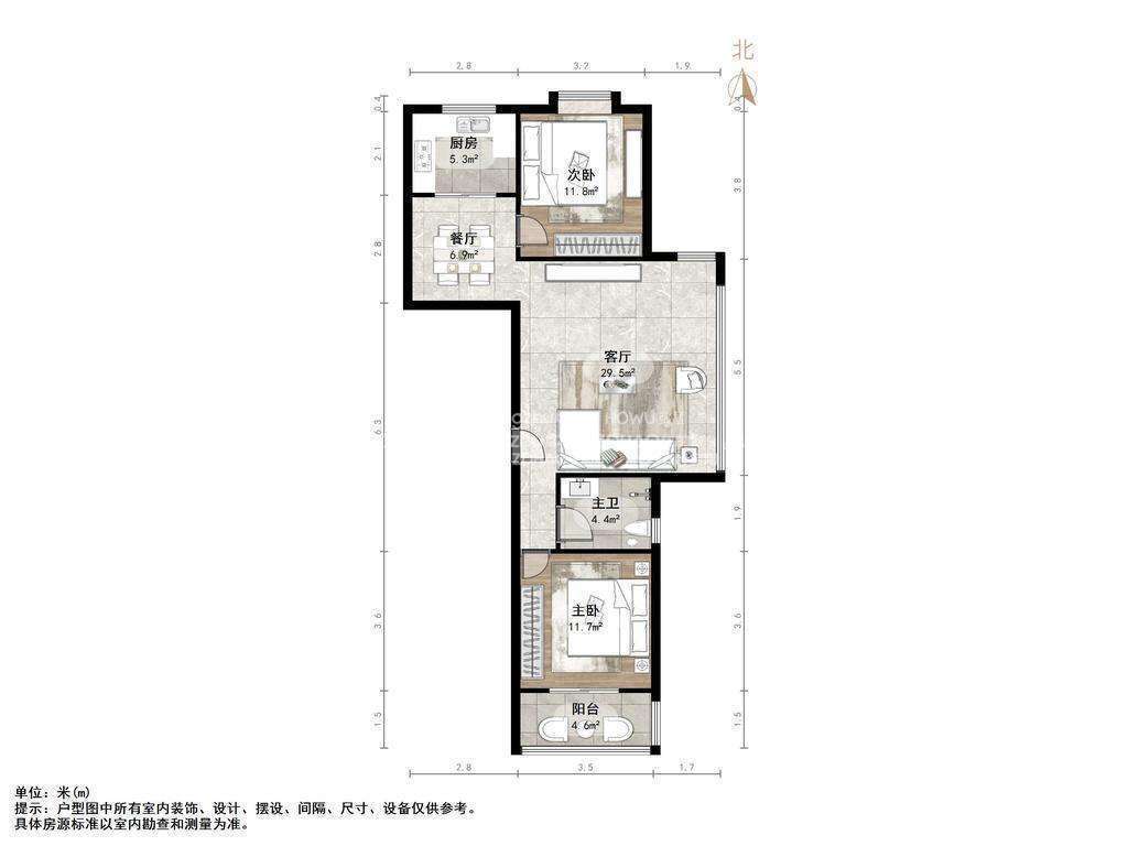 朝向南北 建筑面积96.32㎡