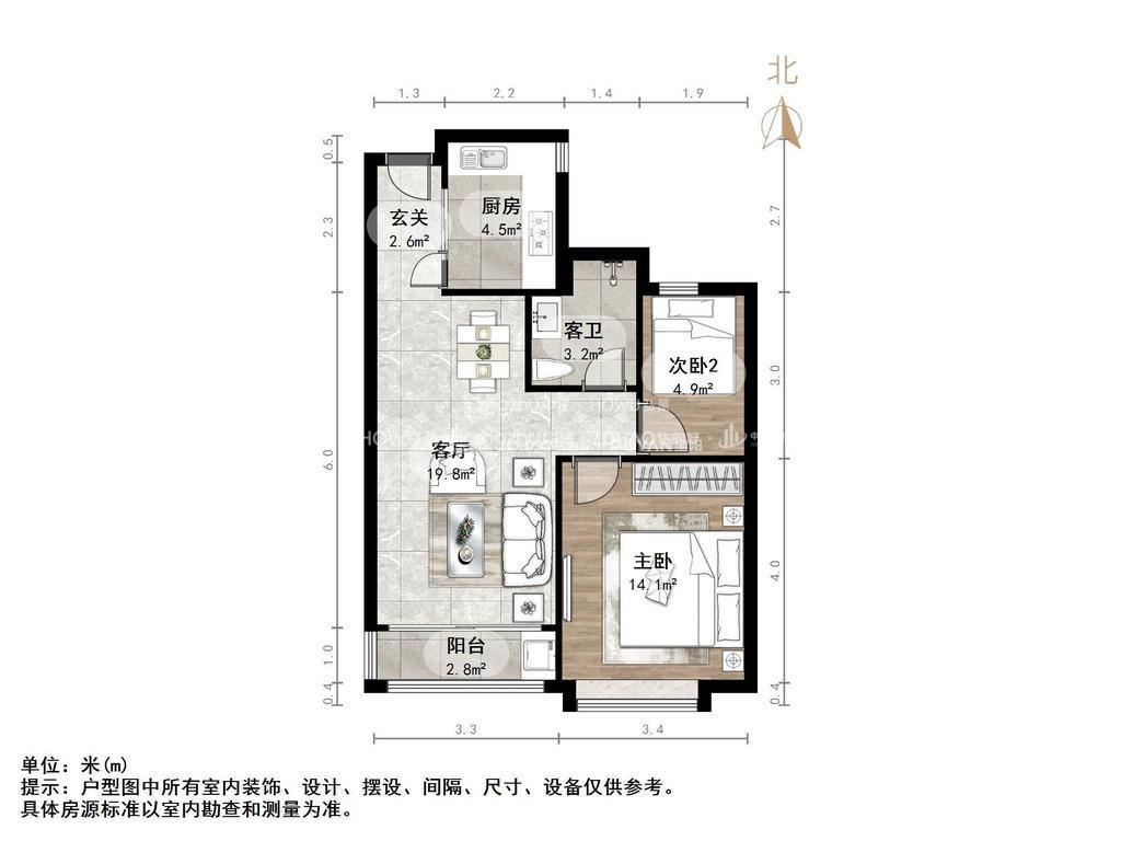 朝向南北 建筑面积77㎡