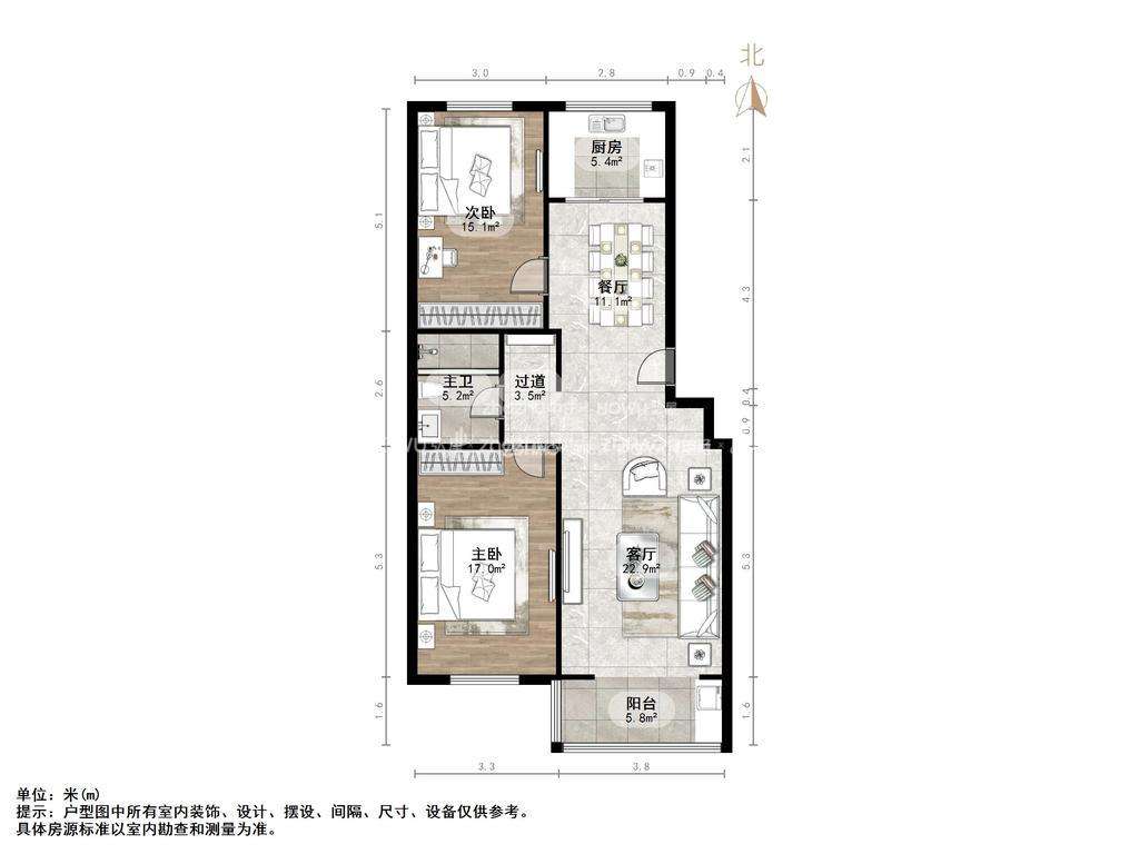 朝向南北 建筑面积103㎡