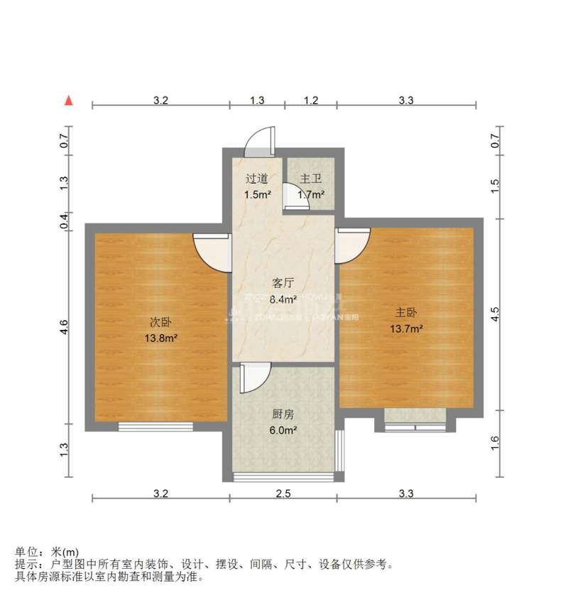 朝向南北 建筑面积58㎡
