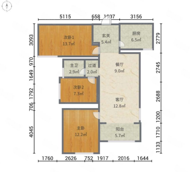 厅室3室2厅1卫1阳台
