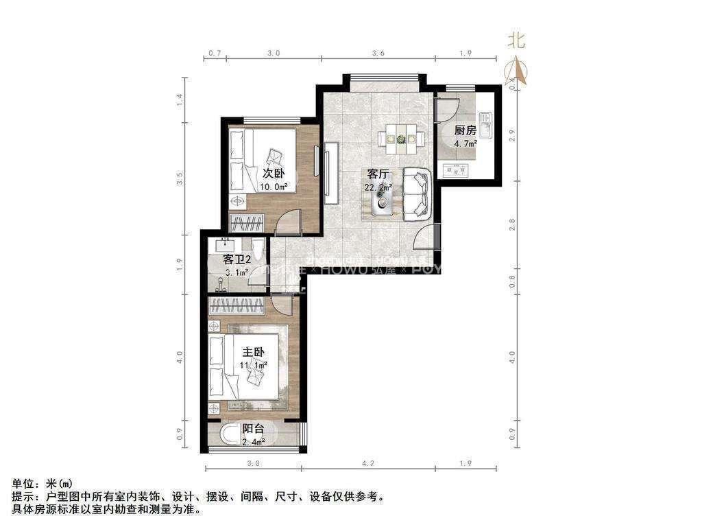 厅室2室2厅1卫1阳台