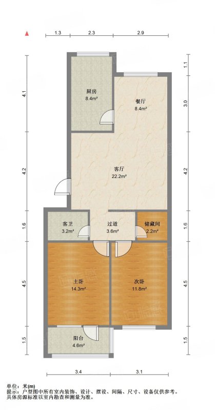 厅室2室2厅2卫1阳台