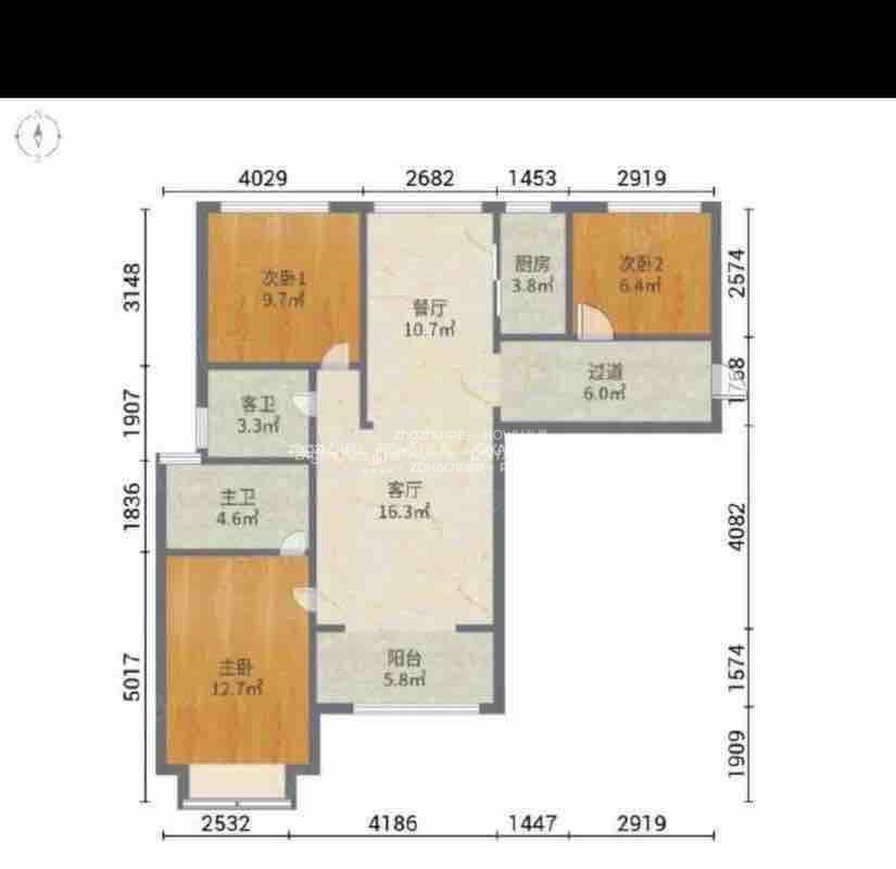 厅室3室2厅1卫1阳台