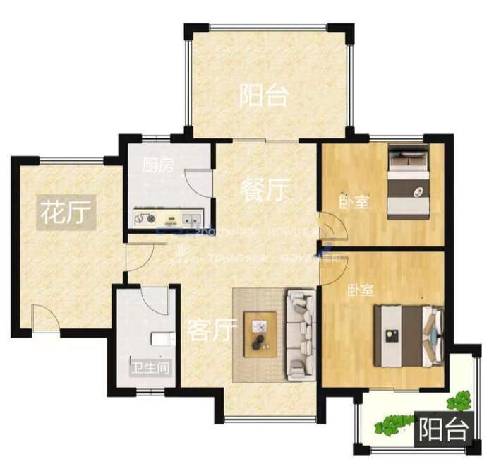 厅室2室2厅1卫1阳台
