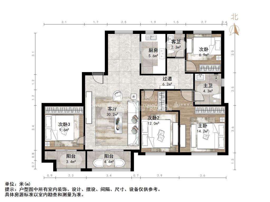 厅室4室2厅2卫1阳台