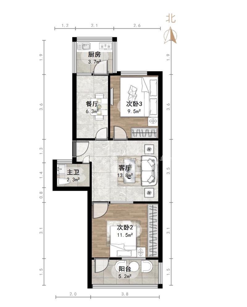 朝向南北 建筑面积75㎡