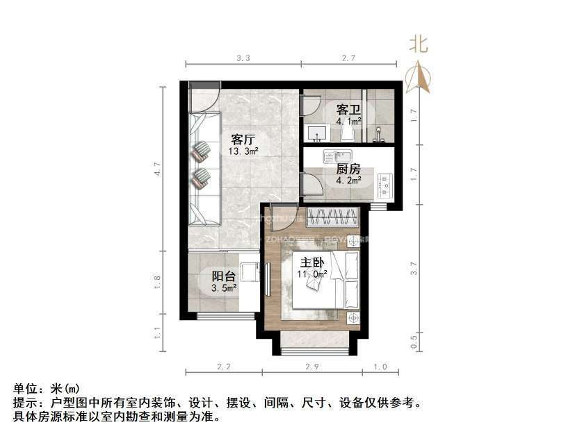 厅室1室1厅1卫1阳台