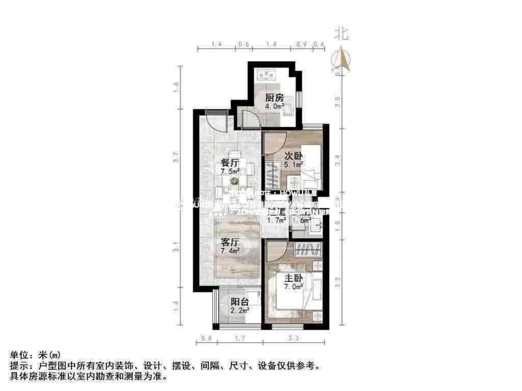 厅室2室1厅1卫1阳台