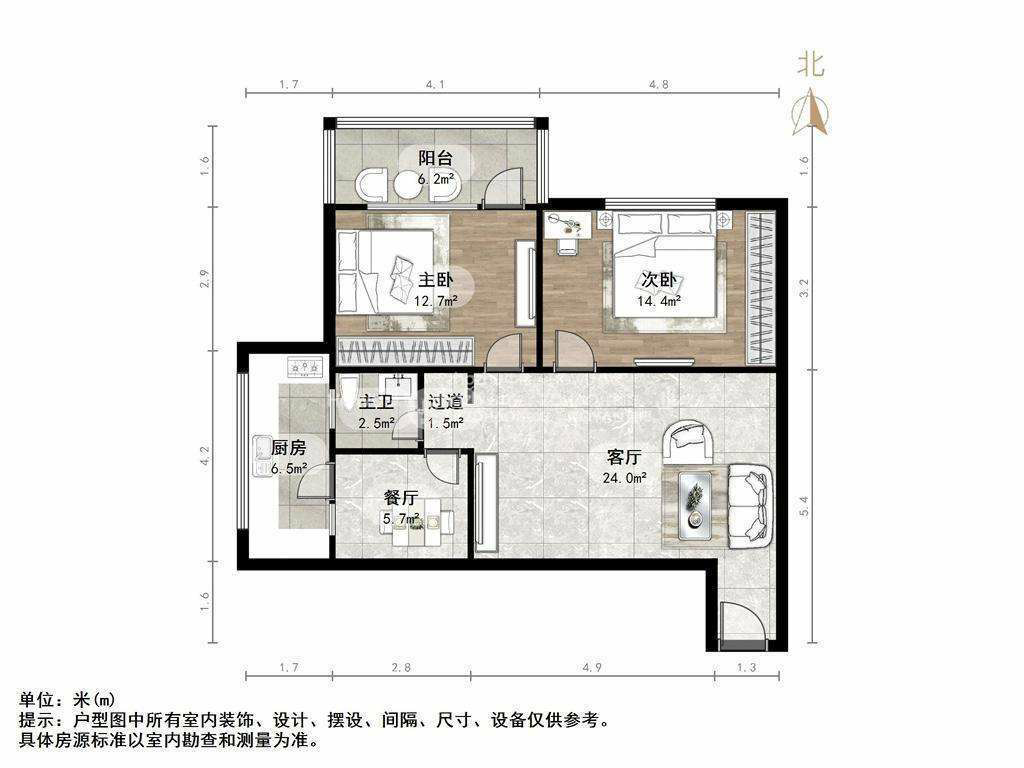 厅室2室2厅1卫1阳台
