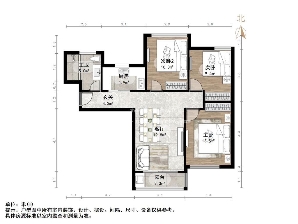 朝向南北 建筑面积98㎡