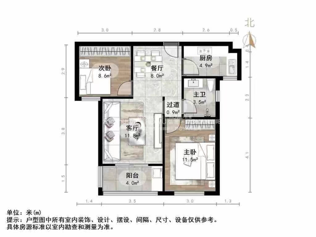 朝向南北 建筑面积82㎡