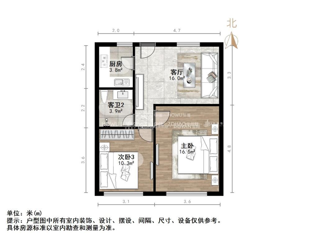 朝向南北 建筑面积68.44㎡
