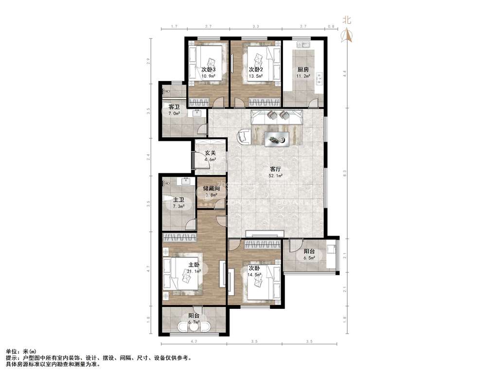 厅室4室2厅2卫1阳台