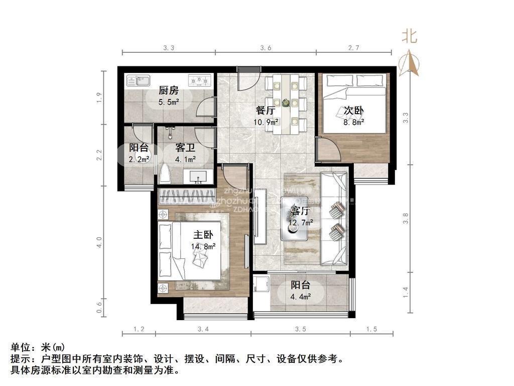 朝向南 建筑面积88.59㎡