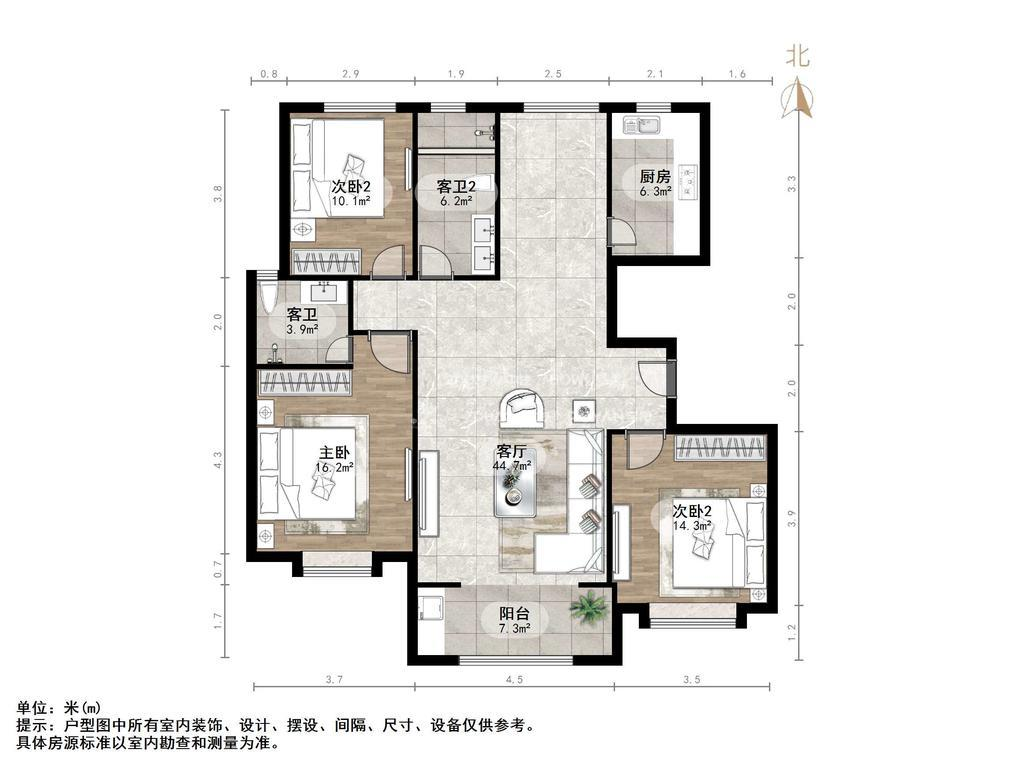 厅室3室2厅2卫2阳台