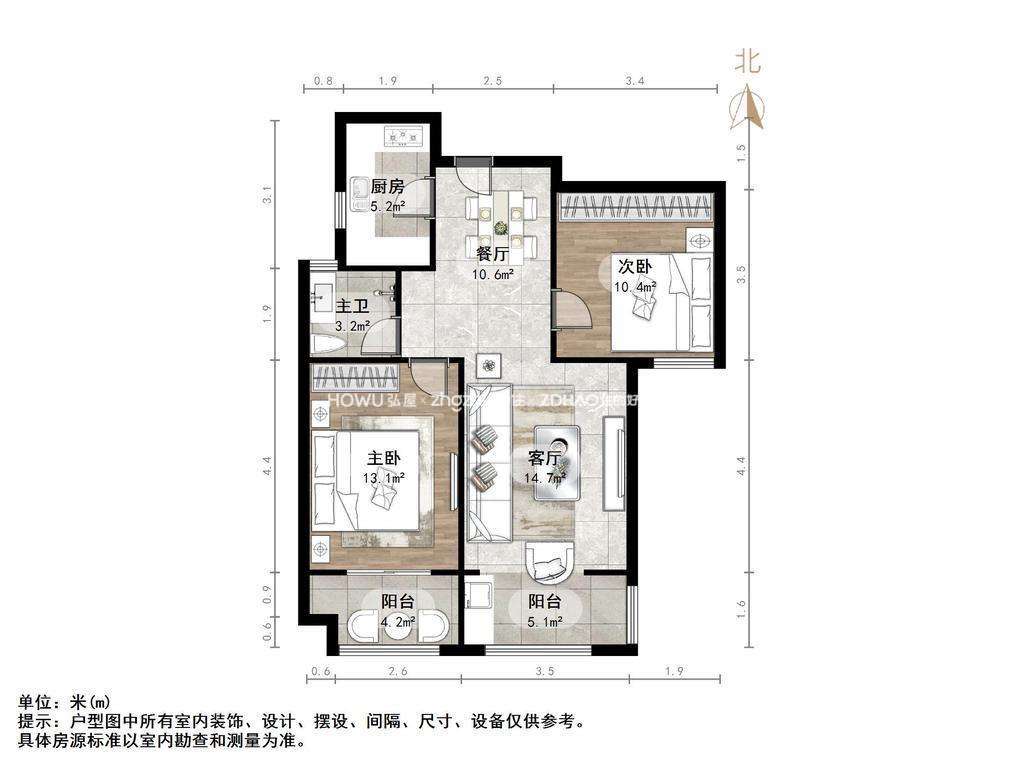 朝向南北 建筑面积93㎡
