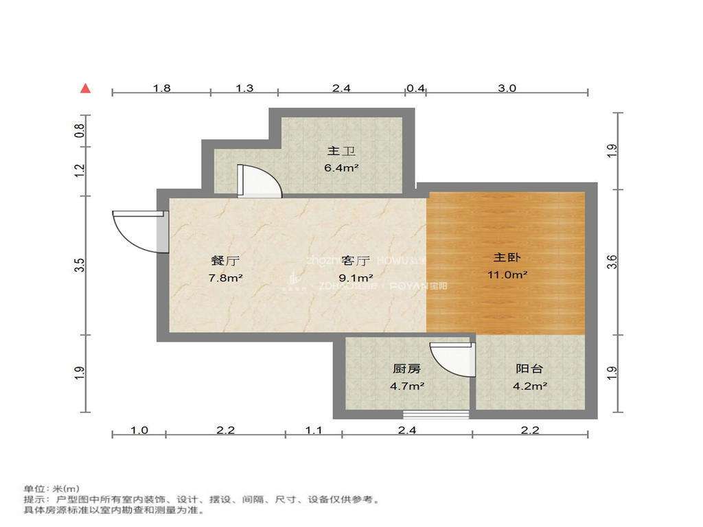 朝向南北 建筑面积60㎡